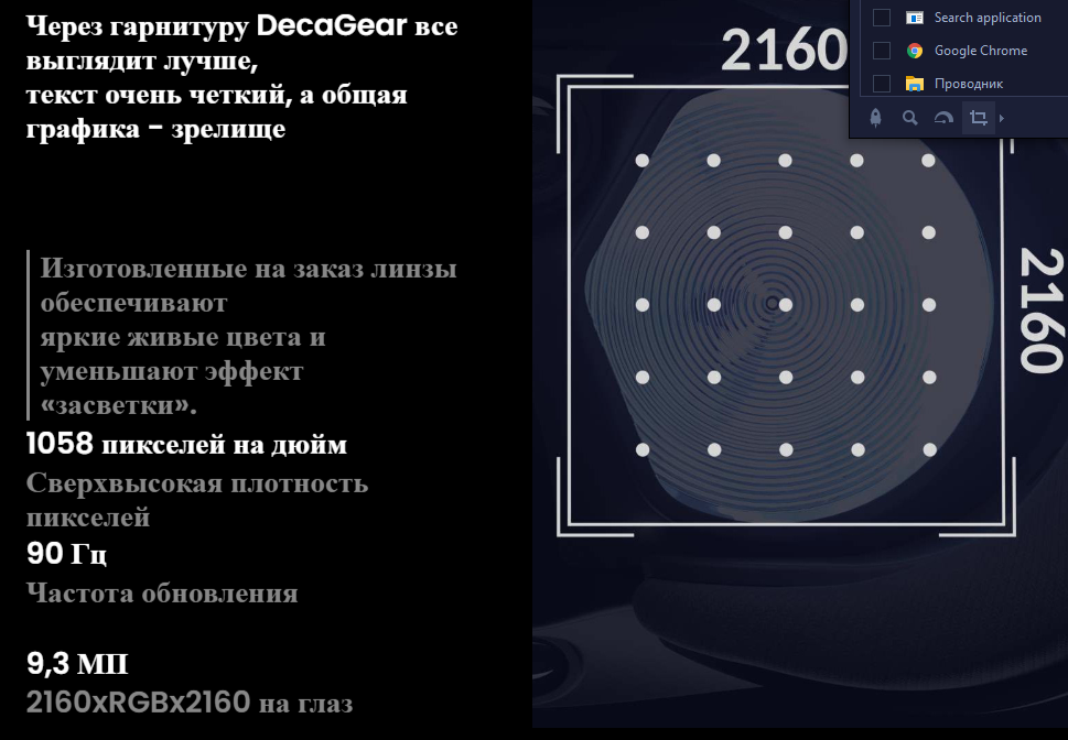 Harh Опубликовано: 12 апреля 2020 Опубликовано: 12 апреля 2020 Ну разрешение явно 1280х1440 на глаз, но угол обзора непонятен... Дело в том, что чтобы судить по картинке, только сам шлем может сказать СтимВРу или кому-то еще, сколько у него угол обзора. Здесь на картинке порядка 90-100 градусов, но насколько они совпадают с тем, сколько у тебя реально в шлеме, неизвестно. Так у тебя получается, к слову, разрешение плюс-минус Окулус С, угол скорее всего сходный. 34 минуты назад, Grivus сказал: можно понять, что наземка даже в виде точки видна, а не прячется в промежутки между пикселями ) Ну... У тебя не CV1, где между пикселями из-за не RGB матрицы можно было слона спрятать