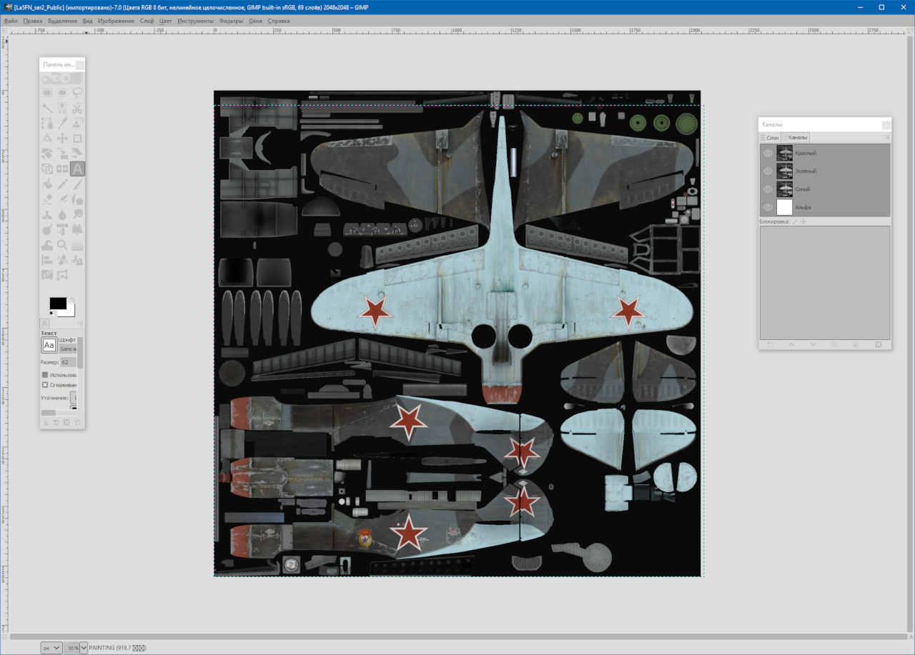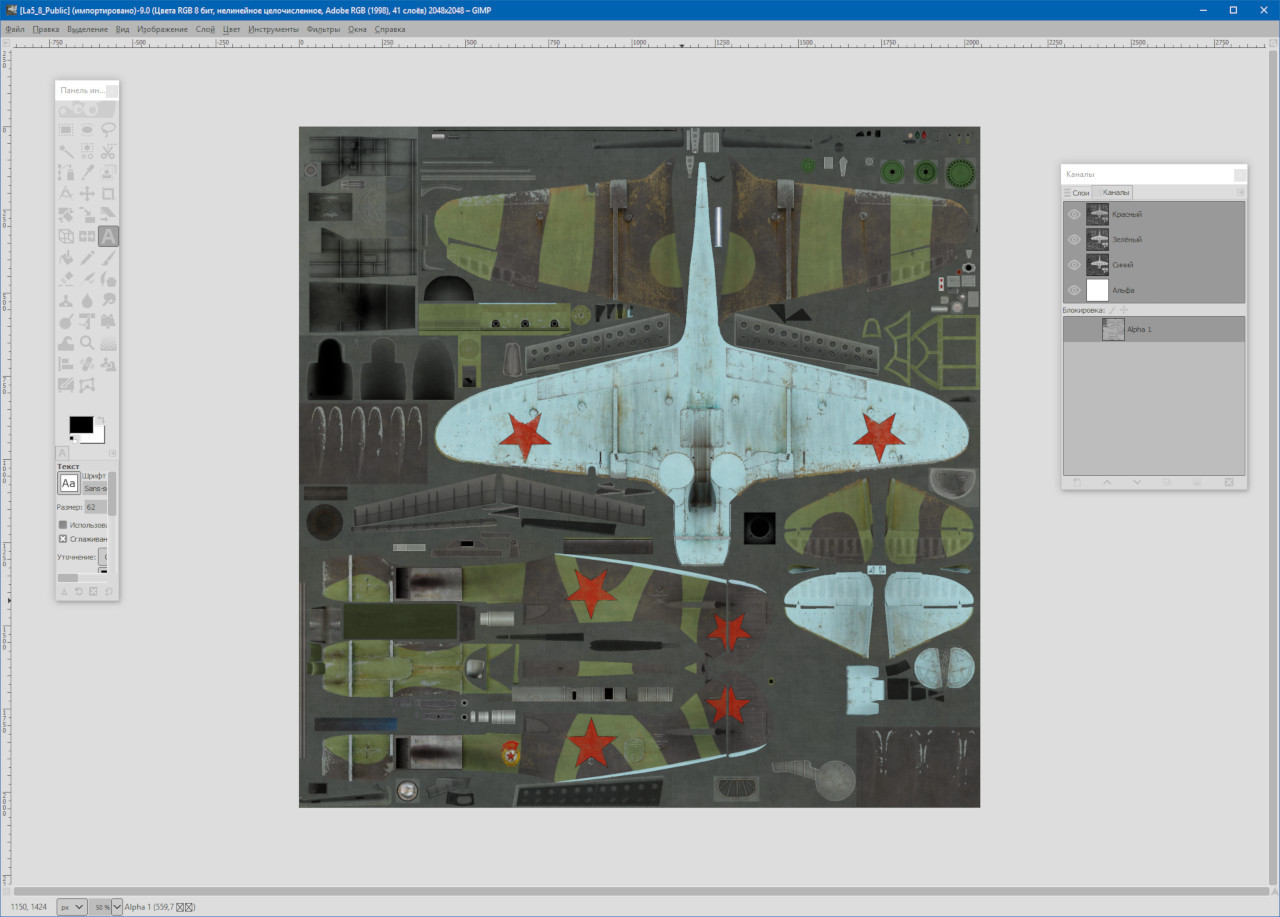 =2ndSS=temkatt Опубликовано: 18 мая 2019 Опубликовано: 18 мая 2019 (изменено) 11.05.2019 в 12:03, deSAD сказал: Ну, я поступил проще, взял да и "выдернул" альфа-канал из "просто" Ла-5, благо, при взгляде "невооруженным взглядом" обе "лавки", в принципе, идентичны, и - вуаля Они не идентичны - как минимум жаропрочные панели совершенно разные, фонарь и воздухозаборник, расшивка в некоторых местах. В кратце по альфе: скачай любой шаблон где есть альфа. На комовском форуме например у камрада ICDP альфа даже отдельным файлом приложена. Посмотри внимательно какие элементы расположены на слое альфа канала. А потом начинай творить. Сводишь все слои которые нужны в альфе в один отдельный слой, убираешь цвет. Редактируешь серым. Есть мануал по значениям серого. От 0 до 255. Логика такая - чем выше значение, тем больше блеск. Например 0 - это черный, будет дырка в текстуре, 255 - абсолютный блеск. Крайние значения практически не используются. Уровни значений от и до расписаны в рофовском мануале. Примерно по памяти, 35 это уже довольно матовая поверхность, а 120 сильно блестит. Потом копируешь этот слой, создаёшь новый альфа канал и вставляешь туда. Смотришь, не нравится, исправляешь, смотришь, и так пока не постигнешь дзен. Изменено 18 мая 2019 пользователем =2ndSS=temkatt 1
