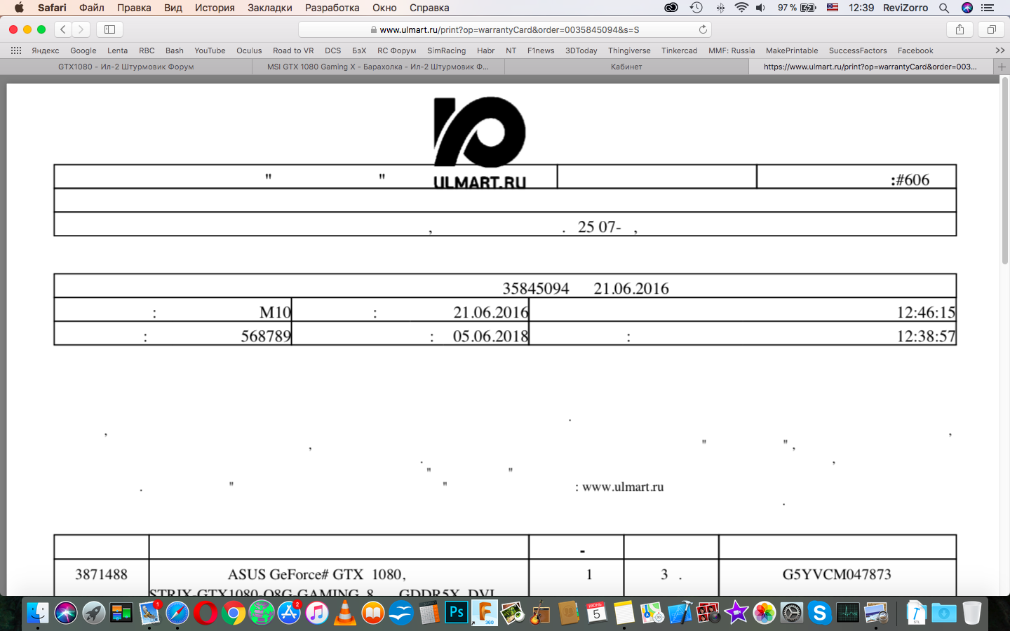 ReviZorro Опубликовано: 4 июня 2018 Опубликовано: 4 июня 2018 (изменено) ПРОДАНО Продаю видеокарту nVidia Geforce GTX 1080 (ASUS Geforce 1080 STRIX-GTX1080-O8G-GAMING) Обратите внимание, просто 1080, не 1080 Ti ! Страница на сайте производителя - https://www.asus.com/ru/Graphics-Cards/ROG-STRIX-GTX1080-O8G-GAMING/ Одна из первых моделей GTX 1080, разработанных для VR (содержит второй HDMI разъем специально для шлемов VR). Покупалась два года назад. Не разгонялась, не использовалась для майнинга, работала на штатных частотах. Причина продажи - апгрейд до 1080 Ti. За карту хочется 37 000 руб. Разумный торг возможен. Москва, желательно самовывоз м. Динамо, Петровский парк. С пересылкой заморачиваться нет желания, сорри. Гарантия по 05.06.2018 (см. вложение) Изменено 15 июня 2018 пользователем ReviZorro