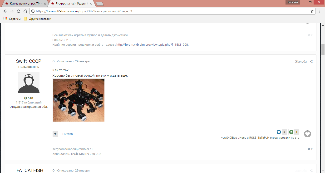 =19GvFAB=Vasila Опубликовано: 30 августа 2018 Опубликовано: 30 августа 2018 (изменено) Скрытый текст 44 минуты назад, Aviator43506 сказал: Куплю ручку от рус ТМ Cougar Пиши ему https://forum.il2sturmovik.ru/profile/47334-swift_cccp/. Изменено 30 августа 2018 пользователем =19fab=Vasila