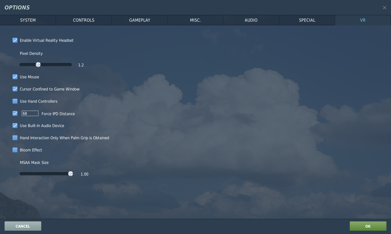 Antony99 Опубликовано: 22 октября 2020 Опубликовано: 22 октября 2020 (изменено) 16 часов назад, Grivus сказал: Понял, спасибо. Да, надо было брать A6000 )))) ЗЫ интересная петрушка, у меня на Ларге и СС 100% разрешение на каждый глаз 3104х2104 (5К+), а у твоего 8К 2456х1556, странно это. Да это более чем странно, об этом тоже думал когда тестили, об этом я тебе и говорил что все крайне запутанно! 17 часов назад, ABP_158 сказал: Антон,привет.Параметр Force IPD еще можно поменять на меньший.Попробуй. Саш, тогда кабина уже будет не реальных размеров,тем более у Антохи IPD в жизни 68 вроде. На Ка-50 если поставить 63, то кабина у него будет размером с Боинг -))) Изменено 22 октября 2020 пользователем Antony99