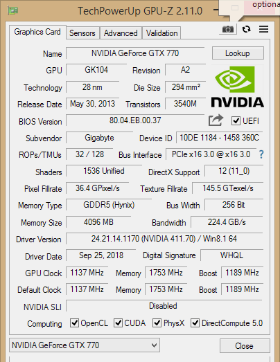 AirSerg Опубликовано: 12 ноября 2018 Опубликовано: 12 ноября 2018 Продам видеокарту Gigabyte GTX 770 4GB Windforce 3X (индекс производителя GV-N770OC-4GD, rev.2 ). Карта имеет штатную частоту gpu 1137 МГц и буст до 1189 МГц по спецификации Гигабита, мой экземпляр в играх бустит на частоте 1228 МГц (см. скрины GPU-Z). В 2D режиме карту вообще не слышно, скорость 750 об/мин, температура 32-35 градусов. В 3D под нагрузкой выше 70-75 градусов не поднимается, обороты по этом 2000-2300, шум средний и за игрой не слышен (играем то мы не в тишине). Благодаря 4 ГБ видеопамяти она не упирается в объем памяти и хорошо показывает себя в современных играх, в отличии от более распространенной версии с 2 ГБ.На карте следующие разъемы для подключения мониторов: DVI-I, DVI-D, DisplayPort 1.2, HDMI 1.4a.Для подключения требуется два 8-пин разъема (один переходник есть в комплекте) и БП 600 Вт, длина карты 292 мм.В комплекте: коробка и переходник 8-pin pci-e на 2 molex. Цена: 7500 р.г. Самара, связь либо через личку, но лучше и быстрей почта: noholy (gaff) ro . ruНахожусь в районе ТЦ «Виваленд». Есть отправка по РФ ТК СДЭК или через Авито-доставка.