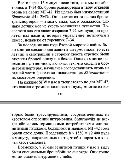 =K=Gunther Опубликовано: 14 декабря 2018 Опубликовано: 14 декабря 2018 8 часов назад, mehh сказал: Перебитая малокалиберным зенитным снарядом тяга руля высоты. Самолет совершил посадку на колеса на свой аэродром В 1-м штурмовом авиакорпусе на одном Ил-2 зенитным огнем была «оторвана» левая половина руля высоты, левая половина стабилизатора и руль поворота, но самолет вернулся. Полет выполнялся на скорости 260-270 км/ч по прямой без эволюции. Снижение и подъем осуществлялось только газом в вертикальной плоскости. Случаи бывают разные. Вот из воспоминаний немецкого танкиста. Но это опять же частный случай. Хотя показывающий, что даже пехота знала уязвимые места ИЛа. 1