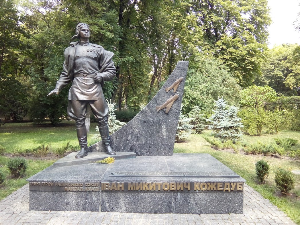 marc Опубликовано: 31 августа 2015 Опубликовано: 31 августа 2015 Оказывается, буквально в трехстах метрах от памятника военным летчикам с Быковым, на Аллее Славы стоит замечательтный мемориал Ивану Кожедубу.