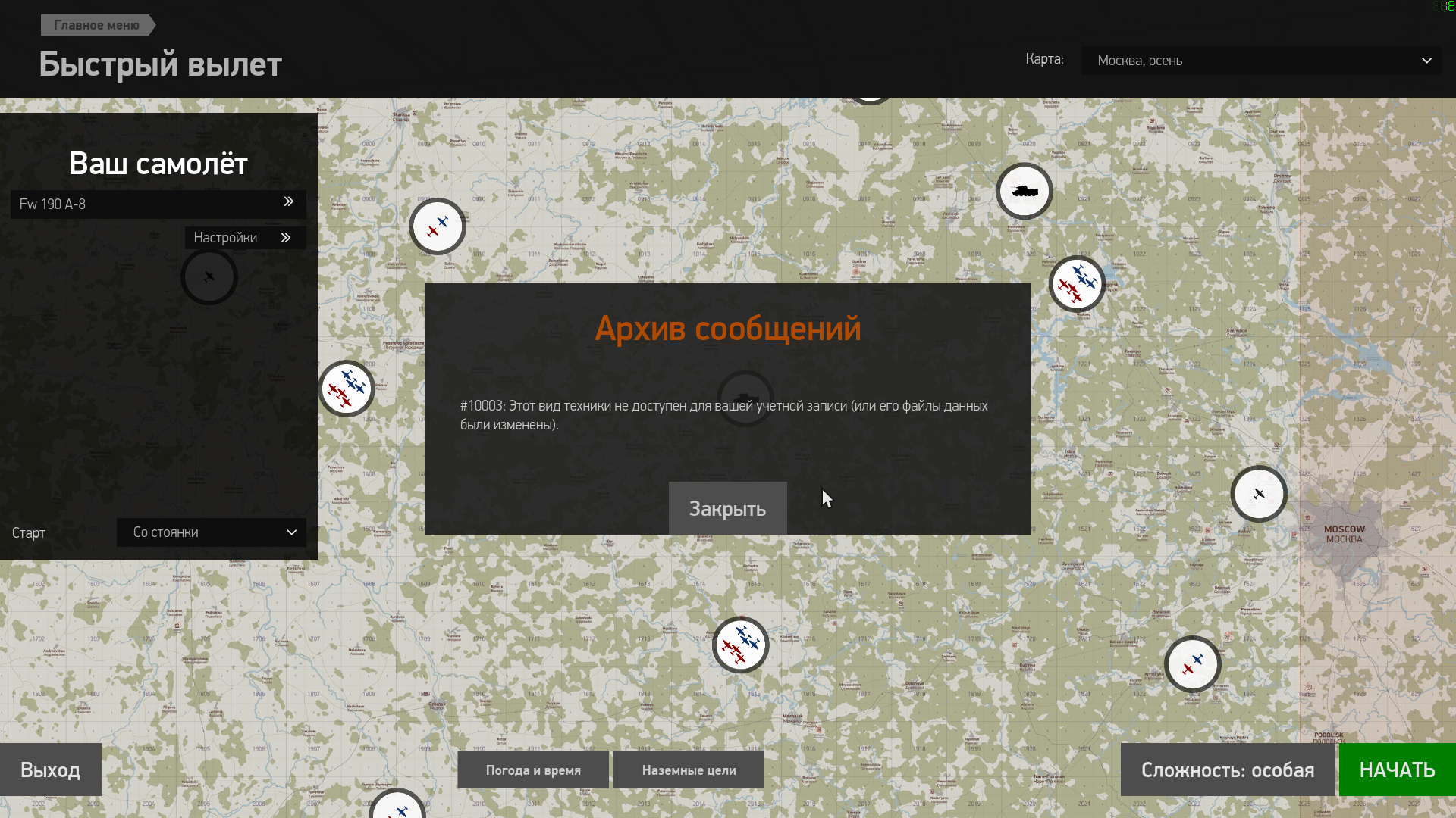 Fw-190 F8 штурмъягер - недоступен вылет
