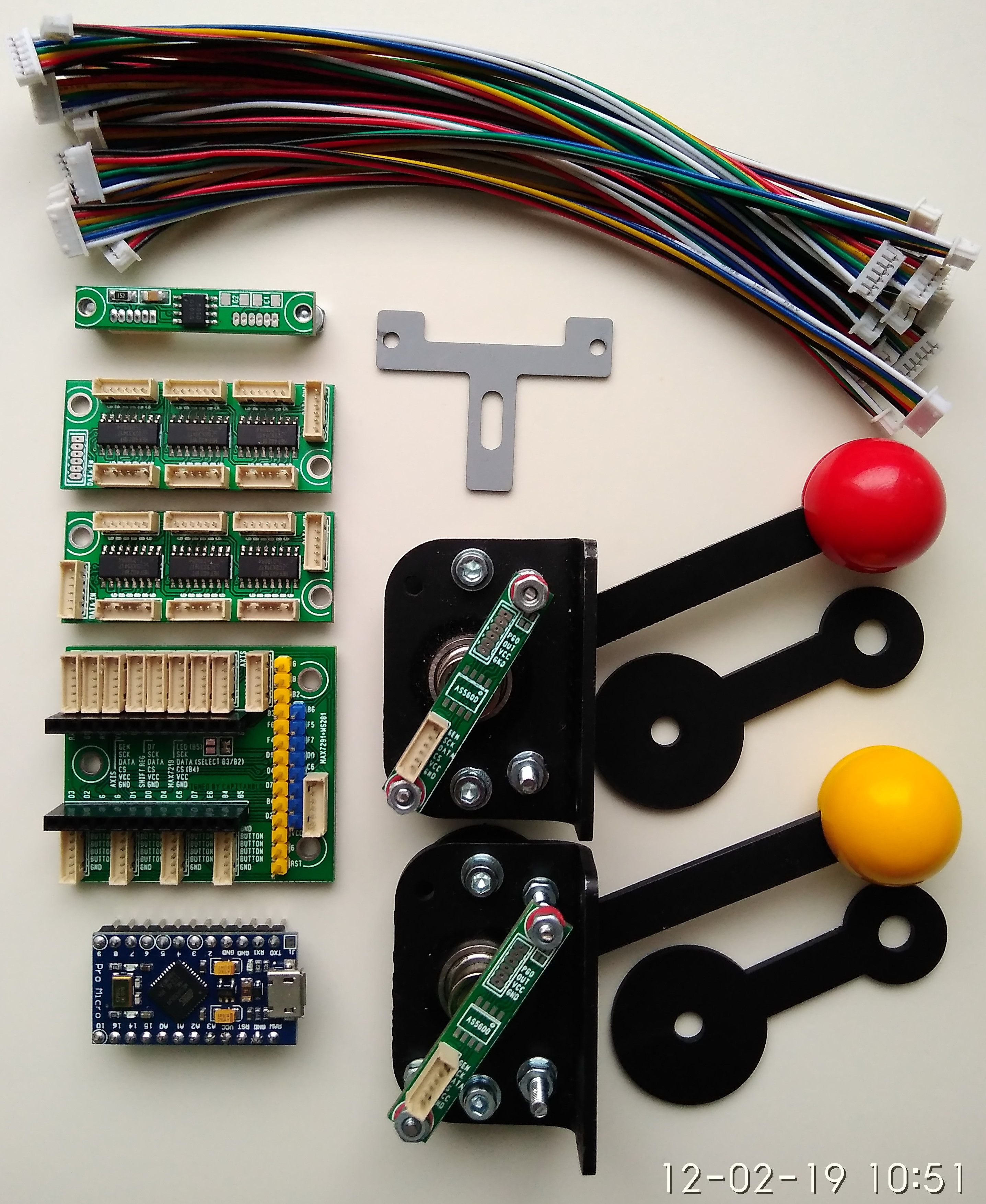 Vumpel18 Опубликовано: 11 марта 2019 Опубликовано: 11 марта 2019 (изменено) Комплект позволяет расширить функционал РУД COUGAR до: - 8 осей (3 на датчиках TLE5010, 5 аналоговых); - 48 линий кнопок. Скрытый текст Для установки датчика TLE5010 на ось газа имеется металлический адаптер. Скрытый текст Два датчика TLE5010 установлены на механизмах ДОП v_2. Скрытый текст Механики на подшипниках комплектуются двумя рычагами. Для подключения прилагаются 6 pin кабеля с разъёмами "мама" JST шаг 1,25 мм.. Контроллер прошит, создан профиль конфигурации для РУД и загружен. Для экстремалов. Скрытый текст Имеется возможность сохранения функционала микростика с помощью дополнительных настроек в конфигураторе (минус две аналоговых оси). В итоге получается отдельное независимое устройство со своими VID, PID. Скрытый текст Скрытый текст Все вопросы в личке. Изменено 11 марта 2019 пользователем Vumpel18 10 3 2