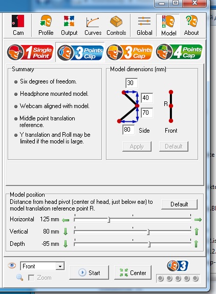 veterok Опубликовано: 7 февраля 2015 Опубликовано: 7 февраля 2015 А зачем клипса так далеко в сторону? Что бы не затенялась головой и имитация толщины наушников 5см. Мы тут как-то говорили про ориентацию камеры, так после того у меня, в принципе, получилось при Pitch=6 движение головы вперёд (по осиZ) практически без смещения по осиY. Но, у меня камера внизу. Получается, если камера стоит сверху, значение Pitch, по идее, должно быть отрицательным. Да у меня камера над и за монитором глубже, значение вертикаль -6 А вот горизонт и наклон, что то у меня не влияют .