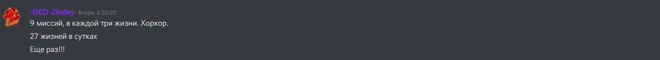 И да, спасибо за скриншоты.  В дискорде была такая каша, что я реально ""потерялся" и неправильно тебя понял. А когда все разложено "по полочке" - все четко и понятно. Миссия - 2,5 часа, 9 миссий в сутки. Такой терминологией и буду пользоваться.