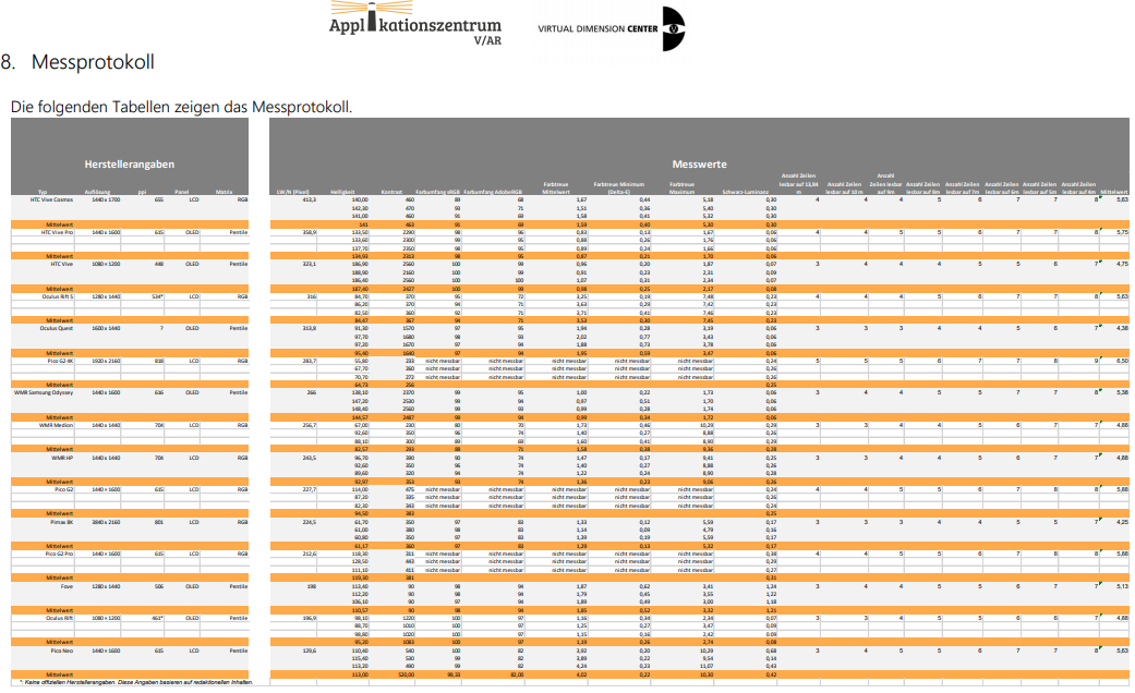 4yk Опубликовано: 27 декабря 2020 Опубликовано: 27 декабря 2020 Die Testreihe beinhaltete nicht die Messungen aller (aktuellerer) HMDs wie die Varjo VR2, Valve Index, HP Reverb (G2) und der Pimax VISION 8K X/ Plus, Pimax ARTISAN, Pimax 5K Plus/XR und Star VR One. https://www.vdc-fellbach.de/fileadmin/user_upload/Applikationszentrum_VAR_-_Bericht__10_Stationaere_Messung_der_Bildqualitaet_von_HMDs.pdf немцы не успели потестить G2, обещают в след.году а так все данные у них в отчете.