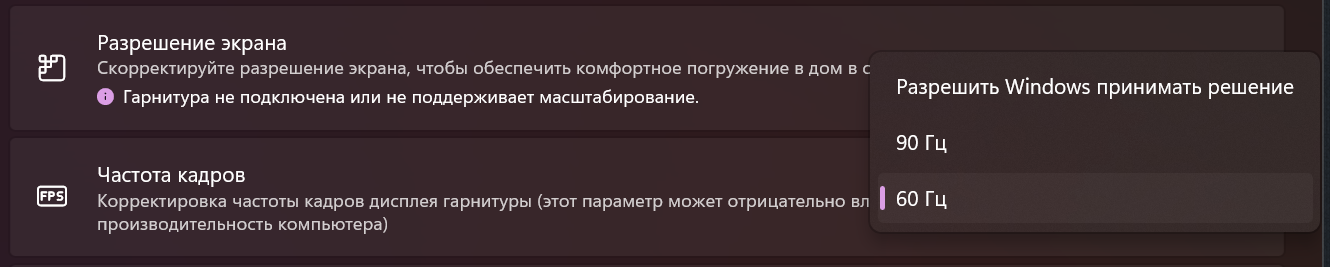Crobat Опубликовано: 23 ноября 2021 Опубликовано: 23 ноября 2021 22 минуты назад, 72AG_StormVR сказал: А как это сделать? Я бы 72 попробовал бы Увы, только 90 или 60 В Windows 11 - Параметры->Смешанная реальность->Дисплей гарнитуры->Частота кадров. 26 минут назад, 72AG_StormVR сказал: Ну хорошо покажи как мне хорошие настройки взять? Да да, тоже хотелось бы увидеть что и как. Какой SS в стиме выставить, какие настройки в Иле, может что-то на уровне драйверов выставить и какой фпс при этом ожидать?