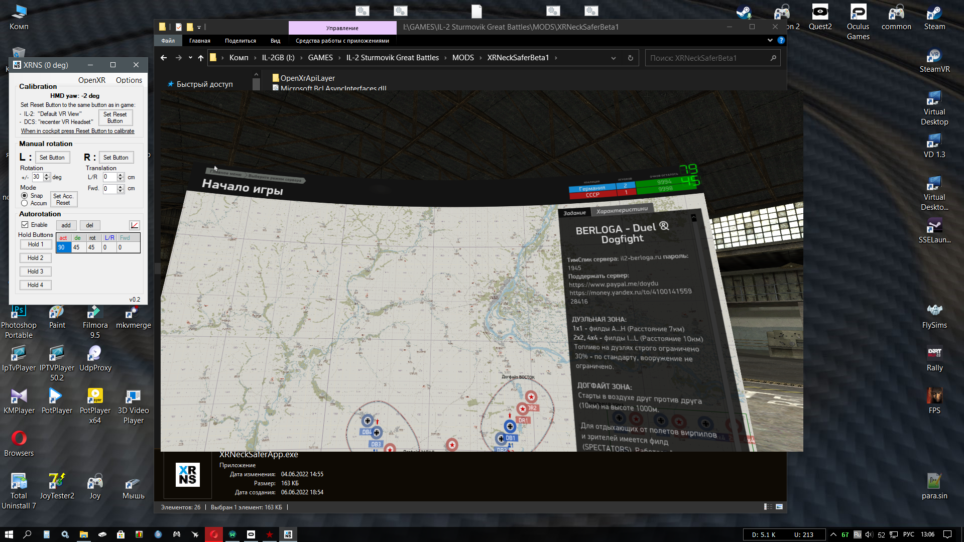MYCYJIbMAHUH Опубликовано: 13 июня 2022 Опубликовано: 13 июня 2022 27 минут назад, =LK=PecToPaH сказал: Да собственно вроде как проблему двоения заборол, наверное все таки привык. Но теперь раздражает мерцание экранов. Система такая. Скрыть содержимое Скрыть содержимое Игру стартую без SteamVR, потому то при сворачивании он ее крашит. Это я попал куда нада)))! Вопрос следующий.СБ тундры просит включить античит.При включении античита игра открывается в обычном режиме(экран).Шлем молчит(чернота). В Аркадный режим полетать,в шлеме можно без античита. Может есть секрет,как зайти в СБ?