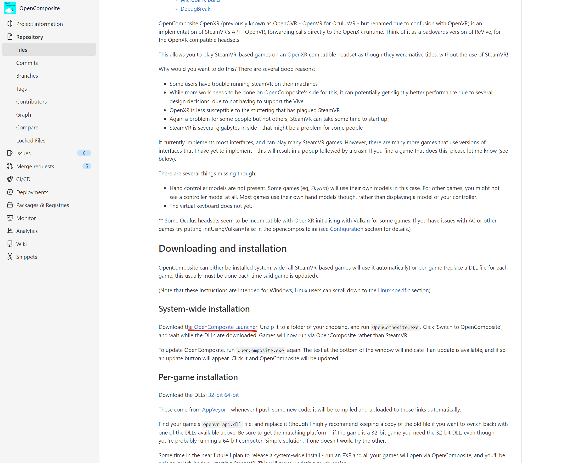 Drakon Опубликовано: 6 сентября 2022 Опубликовано: 6 сентября 2022 Обязательно возьмите OpenXR-версию OpenComposite OpenComposite изначально был разработан для Oculus. При поиске OpenComposite вы можете оказаться на странице проекта GitLab, которая по умолчанию имеет “основную” ветку, предназначенную только для Oculus. Обязательно выберите ветку “openxr”. Как показано в ссылке ниже, URL-адрес заканчивается /tree/openxr. https://gitlab.com/znixian/OpenOVR/-/tree/openxr этот и брал, он судя по всему от WMR G2