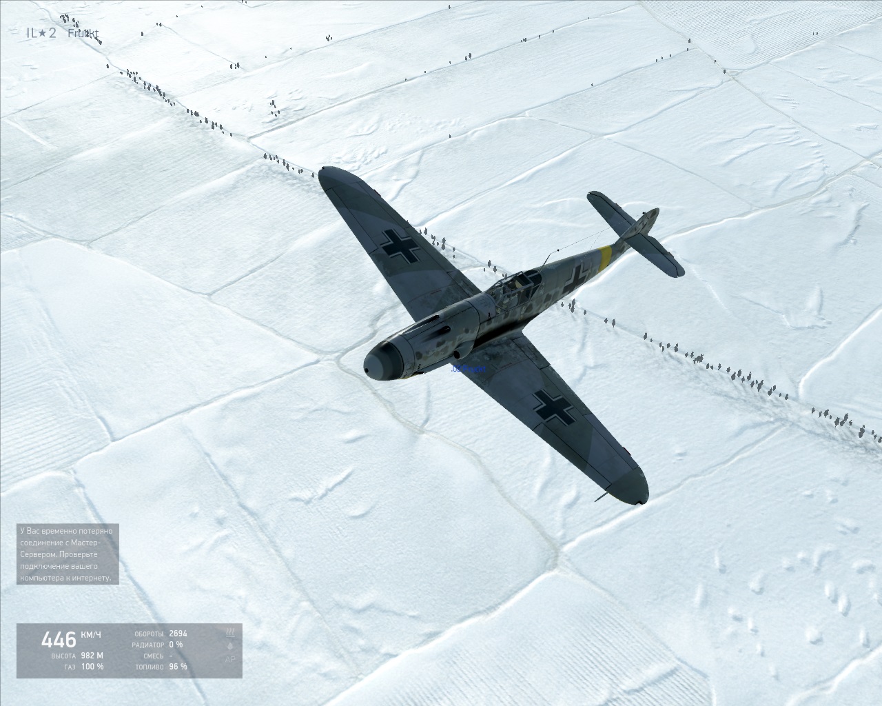 JG77-FluGb0t- Опубликовано: 25 ноября 2013 Опубликовано: 25 ноября 2013 109-й понравился! Но находясь в кабине, сразу поймал себя на мысли - а не БоБ ли это? Много схожего, но много и выигришного. Фридрих лично для меня оказался более летабельным и понятным. Может потому, что в основном летаю за "синих". Ну и вот такой скрин получился. Скатился с полосы при посадке и прошелестел по снежку метров ..надцать. Треснул хвост. Полюбовался я так сек. 40, 109-й в месте трещины развалился на двое. Пока я сообразил сделать второй скрин - отвалившийся хвост исчез. Вот такое кино! Да, мой тоже после аварийной посадки треснул, я начал играться выпуском шасси, костыль раз вышел, потом убрал и тю-тю, не выдержал Правда быстро исчезают фрагменты, тоже не успел. Интересная деформация крыла кстати. Нужно всё смотреть в динамике, словами и скринами не передать, но всё очень круто даже на ранней стадии. Доволен как слон. А это мини-апдейт из скринов для "непрогадавших" серебряных кирпичиков p.s Пошёл летать 3