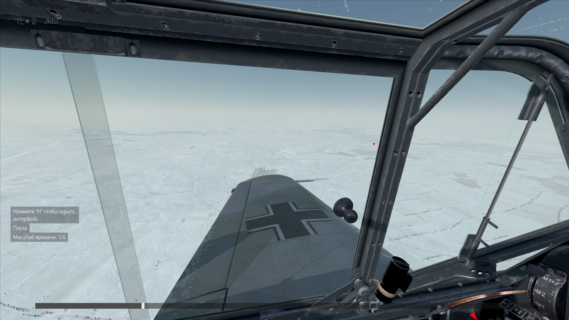 Вот после настроек + post_sharpen = 1 (вроде видно на скрине лучше, но в движении в игре очень усиливается мерцание мелких деталей и особенно леса, над которым ЛаГГ пролетает, лес выглядит как стадо шевелящихся злых диких пчёл). В итоге на фоне мерцания теряется контакт быстрее, поэтому post_sharpen выставил потом в 0