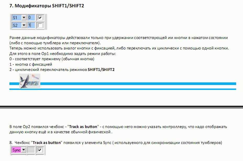 VictorUs Опубликовано: 24 декабря 2014 Опубликовано: 24 декабря 2014 (изменено) Если необходимо, чтобы крайние положения переключателя работали в качестве шифтов (переключали режимы кнопок) и одновременно срабатывали как кнопки (внимание! они постоянно будут нажаты! не назначайте на клавиши клавиатуры!), то следует включить для них опцию Track as button. По-крайней мере в прошивке 1.49 было реализовано. Изменено 24 декабря 2014 пользователем VictorUs