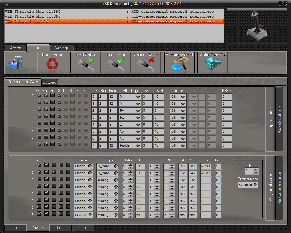 =VCC=Ghash34 Опубликовано: 3 декабря 2021 Опубликовано: 3 декабря 2021 (изменено) 40 минут назад, UnderTr сказал: Есть на руках джойстик кобра 2я ревизия тему по диагонали прочитал, но до конца не понял честно. Джойстик используется как ручной тормоз в симрейсинге. Ряд игр не корректно воспринимает оси, т.е. есть не большой фон Если можно подскажите как оключить лишние кнопки и фонящие (дергающиеся) оси? Сейчас вычитываю мануал от vkb, много написано, а именно как отключить или заглушить полностью пока не нашел. можно прошить в кобру z и вырубить все что мешает в конфигураторе. могу на пальцах в дискорде показать Изменено 3 декабря 2021 пользователем =VCC=Ghash34