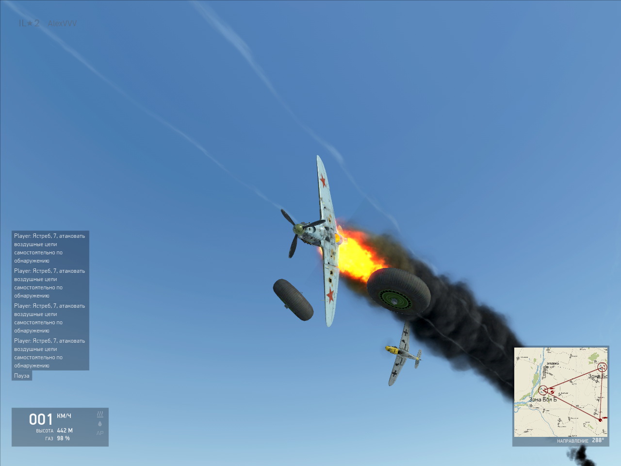 =TrSh=AlexVVV Опубликовано: 26 декабря 2013 Опубликовано: 26 декабря 2013 кажись у него бак взорвался Похоже на то. Хотя один раз действительно рвануло сильно, консоли оторвало, пилот погиб.