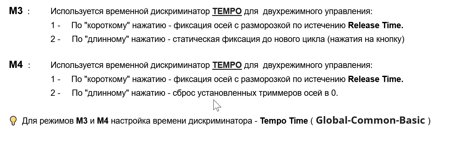 GrayZeeCat Опубликовано: 10 мая 2024 Опубликовано: 10 мая 2024 19 часов назад, Alex_Oz сказал: Поправил: Спасибо. Оси сбрасываются, uStick Switch работает. 20 часов назад, Alex_Oz сказал: По поводу даблкликов - такого управления вообще не предусмотрено : Да, я знаю, инструкцию изучал. Но тем не менее, двойной клик для режимов М3 и М4 сейчас отрабатывает именно так, сброс в центр и тут же триммирование в текущем положении. Сейчас на последней прошивке еще раз специально проверил. В принципе, для режима М3 это можно использовать как фичу, не требуется назначать дополнительную кнопку для сброса триммеров, когда ручка в центре, двойной клик триммирует оси там же, что по сути равносильно сбросу триммера. Возможно, для режимов М1 и М2 двойной клик для сброса осей в 0 тоже был бы удобен, экономия 1 физической кнопки))
