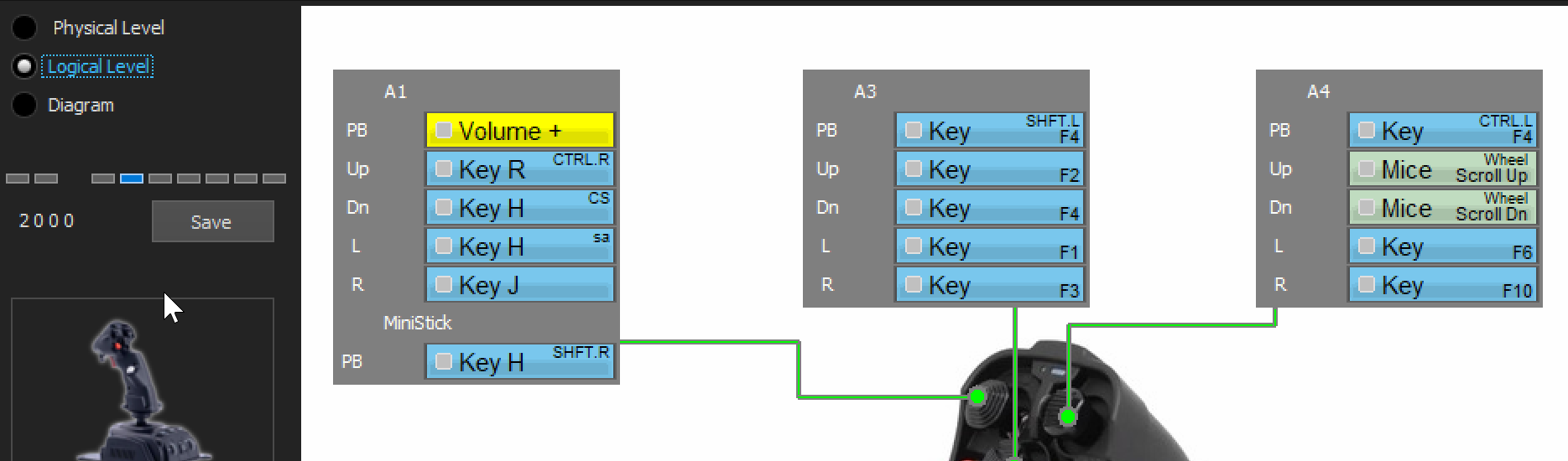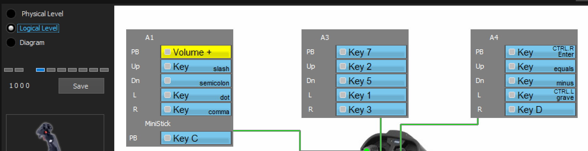 aero4000 Опубликовано: 16 апреля 2024 Опубликовано: 16 апреля 2024 Подскажите, кто знает, особенности работы переключения осей. У меня не получается переключить главные оси XY джойстика GFIV на две другие оси, которые обычно автоматически задействуются министиком верхнего гнезда (ручка MCGU). Я снял верхний министик и поставил туда 5 поз переключатель (хатку с нажатием), таким образом освободив 2 оси. Применяю SWITCH0, но эти две оси не подключаются, стоят на месте. Если переключаюсь на какую-нибудь задействованную ось (педалей, например), то работает, могу ручкой джоя шевелить педали. Как должны быть настроены незадействованные оси, чтобы они заработали в качестве «целевых» для функции SWITCH0? Или это не предусмотрено? Инструкции читал, но не нашел ответа.
