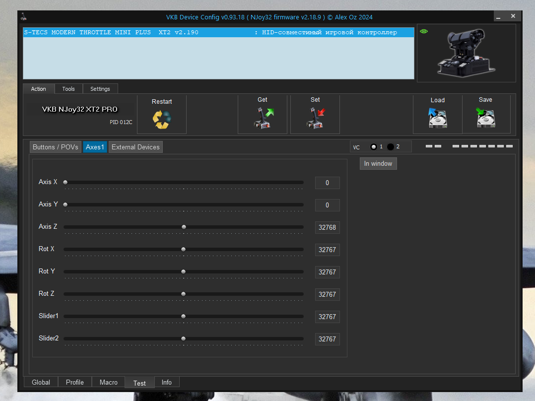 GrayZeeCat Опубликовано: 15 января Опубликовано: 15 января (изменено) Да в конфигураторе ВКБ тебе ничего не надо настраивать, это потом, если изысков каких-нибудь захочется, так все по дефолту работает, кнопки, оси. Покажи скрин настроек управления осей из DCS, как тебе @VictorUs сразу написал. ЗЫ. Калибровку STECS сделал после обновления прошивки? Изменено 15 января пользователем GrayZeeCat 1