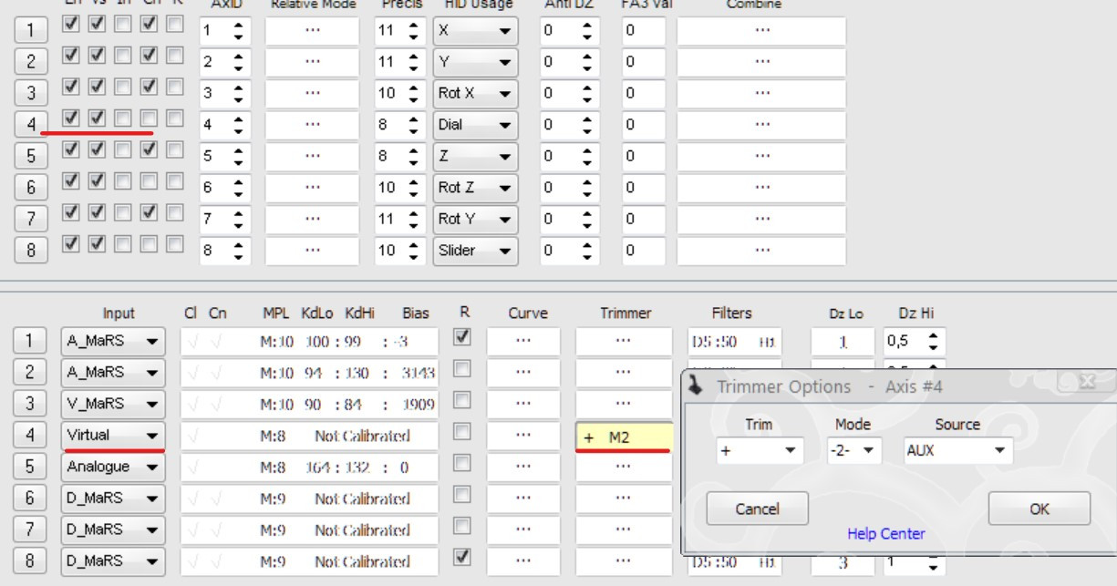 Pilli Опубликовано: 4 августа Опубликовано: 4 августа 25.07.2025 в 11:29, -DED-Ron сказал: Просто новые фичи появляются быстрее, чем обновления руководства. Кто вам мешает назначить свои названия осей в колонке HID Usage? Только не назначайте одинаковые для исключения пересечения. По зуму - на двух кнопках Flaps создаем виртуальную ось на свободной четвертой (если педалей нет подключенных - то ещё 3 есть), которая и будет за него отвечать. Множители скорости подбирайте сами, показана только одна кнопка. Думаю, со второй уже сами справитесь. Перевёл обзор на виртуальную ось, всё ОК, но всё равно присутствует дискретность при перемещении. Я так понимаю это зависит от самого движка игры и это не поправить?